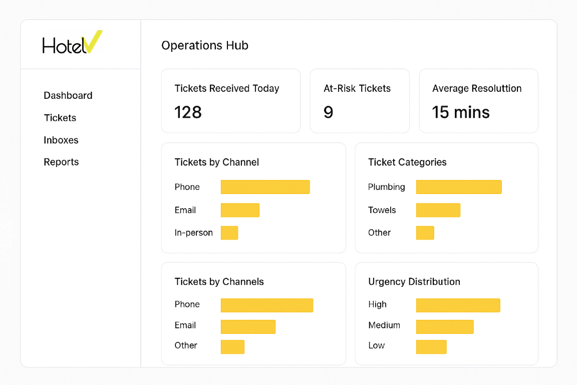 Whether guest request, technical issue, or internal query – everything lands in one shared inbox. AI helps with categorizing, prioritizing, and assigning tickets.